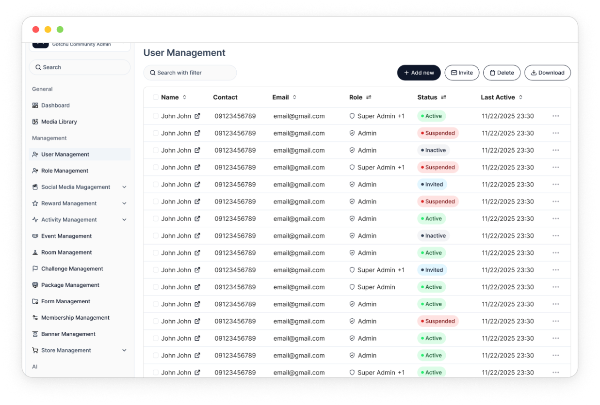 Create your Gotchu workspace, add your members, and customize branding, roles, and permissions in a few clicks.